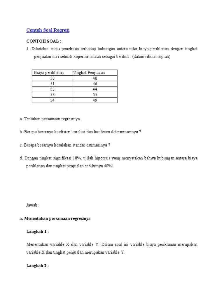 Jawaban Soal Regresi Korelasi Sederhana Pdf