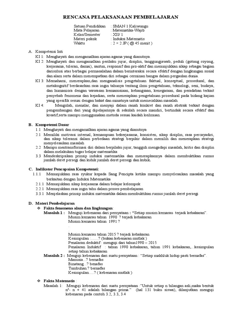 Rpp Induksi Matematika Docx Muhammad Wildanhf Academia Edu