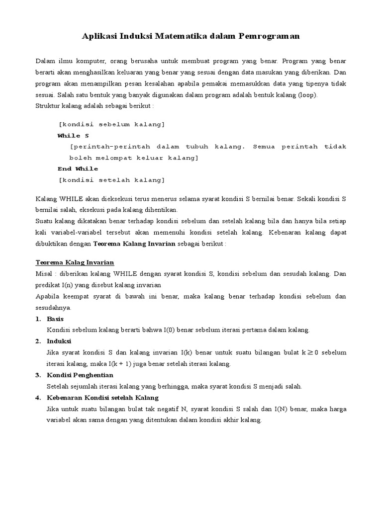 Ii Aplikasi Induksi Matematika Dalam Pemrograman
