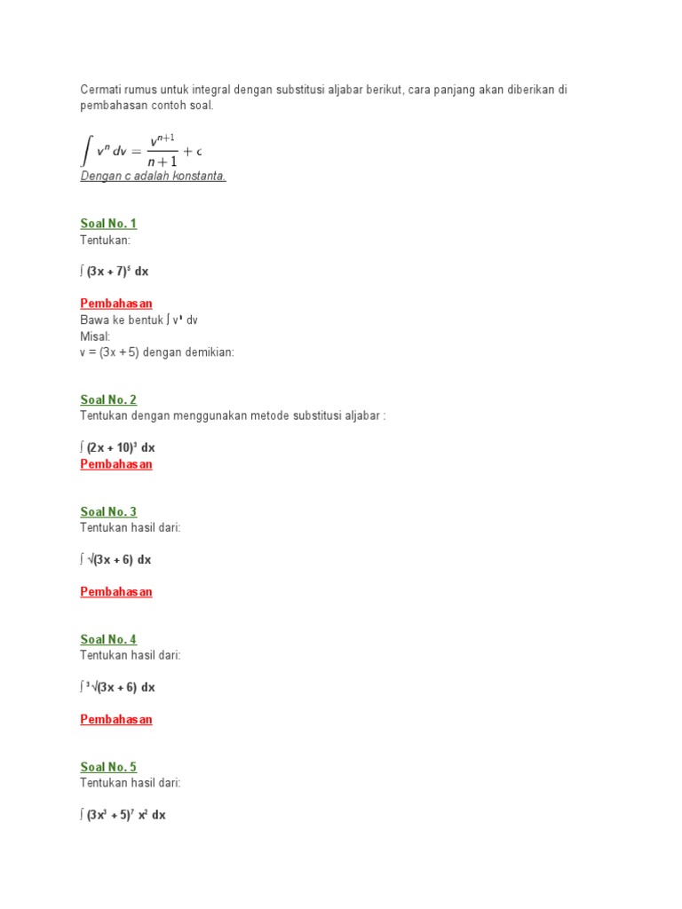 Rumus Integral Substitusi Contoh Soal Beserta Pembahasannya
