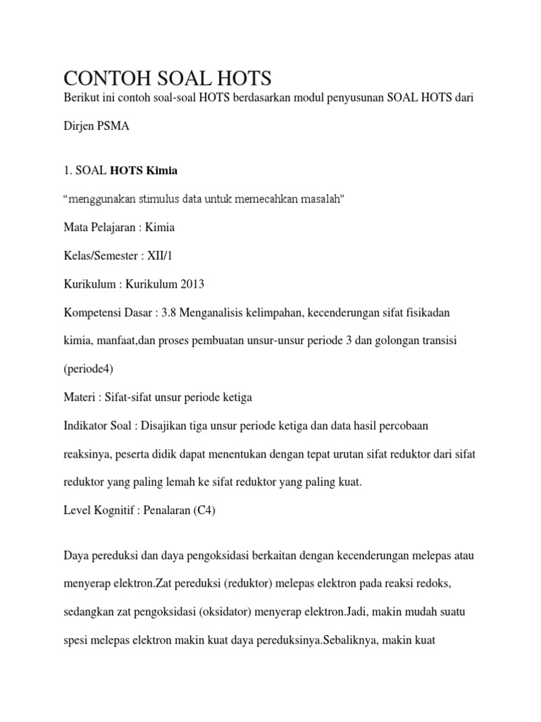 Contoh Soal Hots Kurikulum 2013 Lengkap Kd Dan Indikator Terbaru