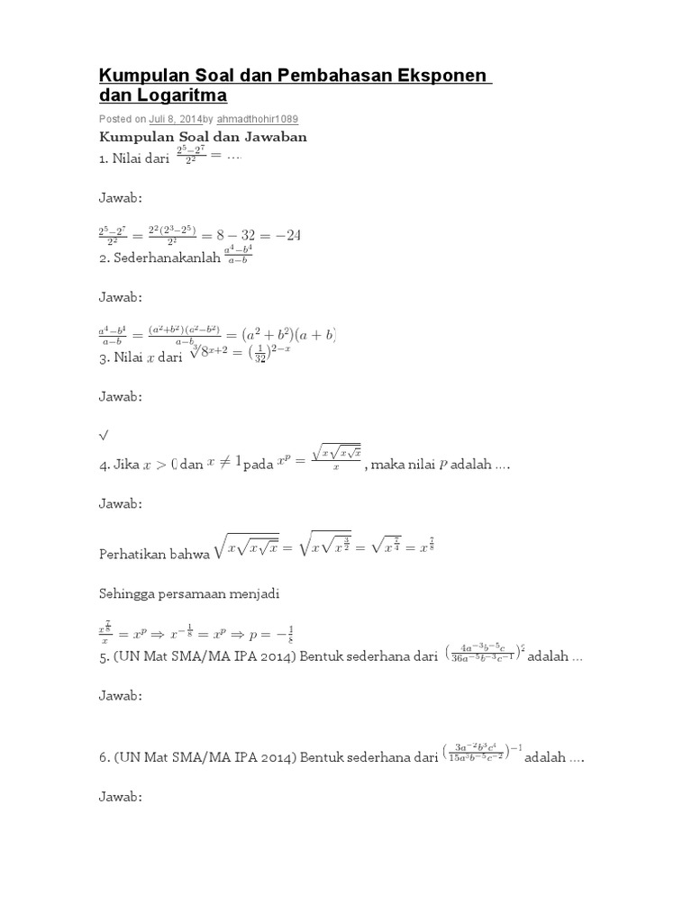 Soal Dan Pembahasan Tentang Eksponen Dan Logaritma Mungkin Blog