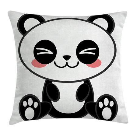 Anime Throw Pillow Cushion Cover Cute Cartoon Smiling Panda Fun Animal Theme Japanese Manga Kids Teen Art Print Decorative Square Accent Pillow
