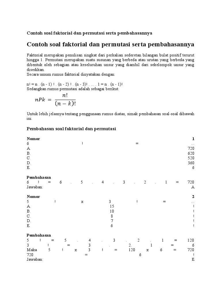 Free Contoh Soal Faktorial Permutasi Kombinasi Latihan Soal