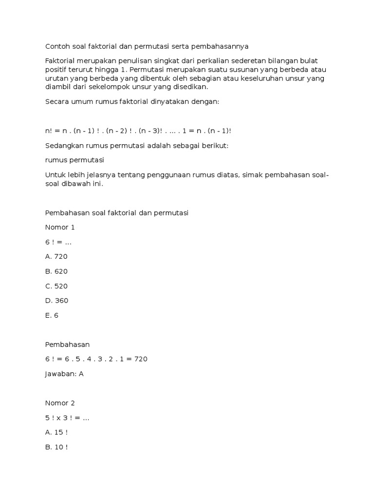 Contoh Soal Tentang Faktorial Permutasi Dan Kombinasi Brainly Co Id