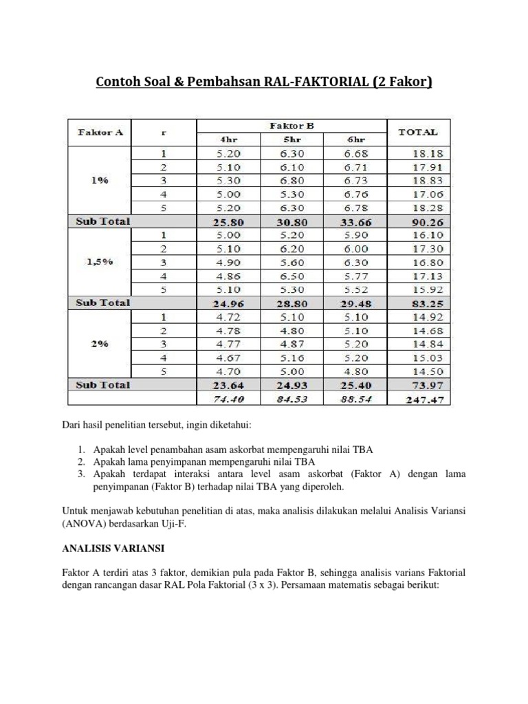 Contoh Soal Pembahsan Ral Faktorial 2 Fakor Wawasan Peternakan