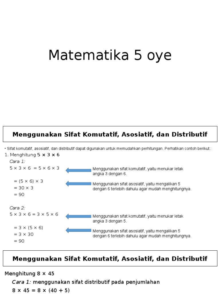 Contoh Soal Sifat Asosiatif Dan Distributif Matematika Kelas 5 Sd