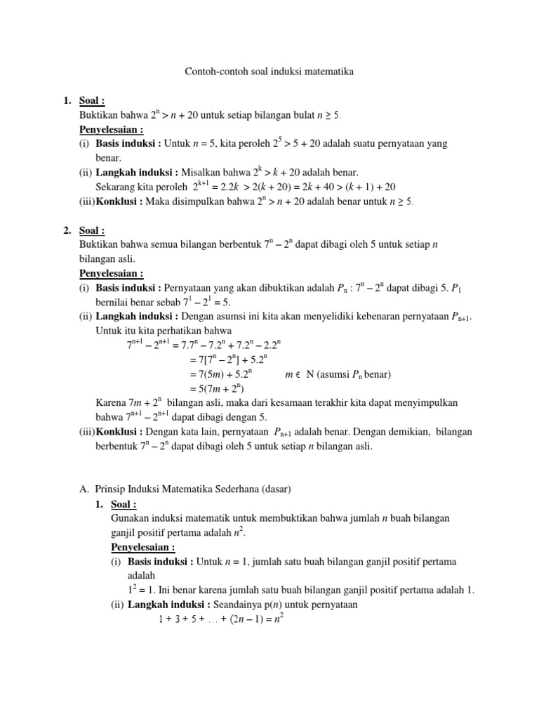 Contoh Soal Induksi Matematika Dengan Penyelesaian Brainly Co Id