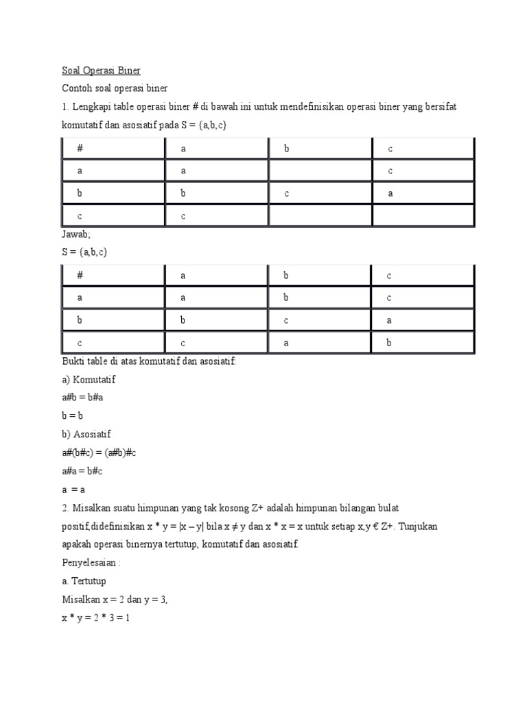 Operasi Biner Matematika Bersama Contoh Soal Dan Jawaban