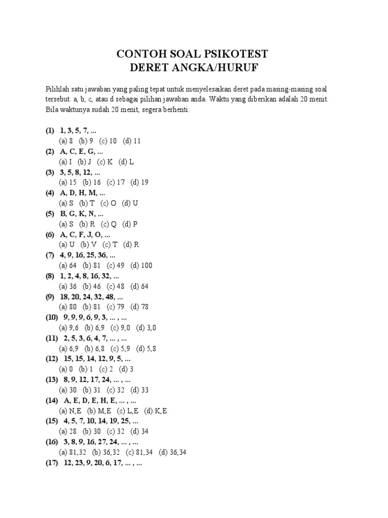 6 Tes Deret Angka 20 Soal Pada Test Berikut Akan Diberikan Deret