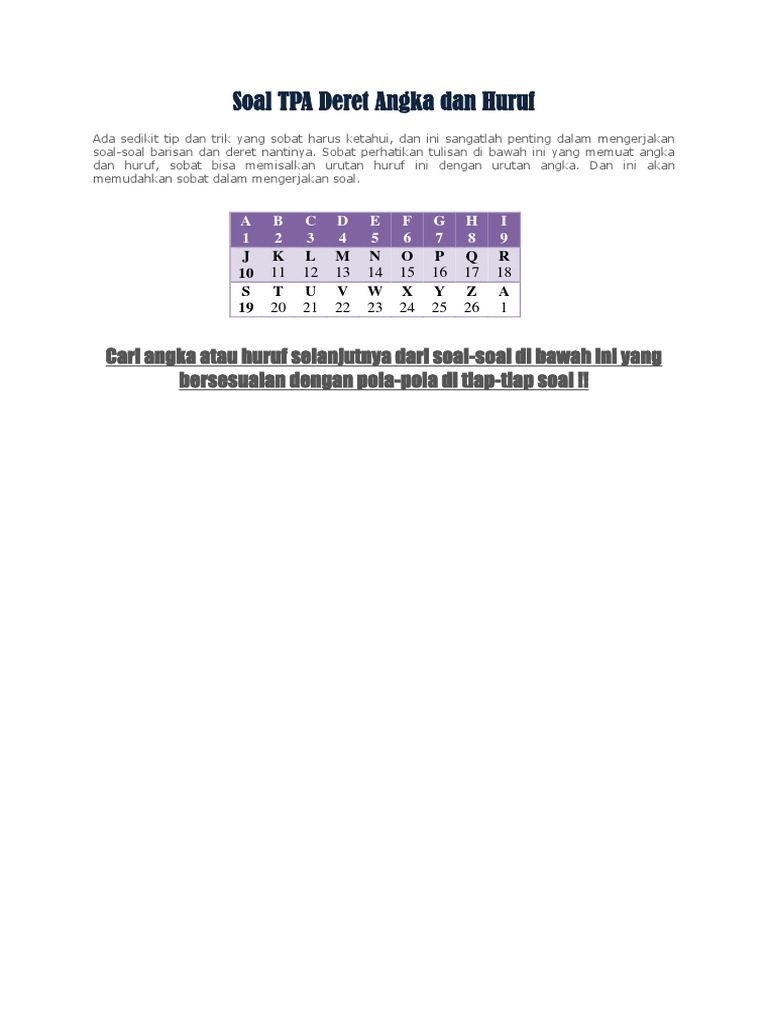 Contoh Soal Tpa Deret Angka Dan Huruf