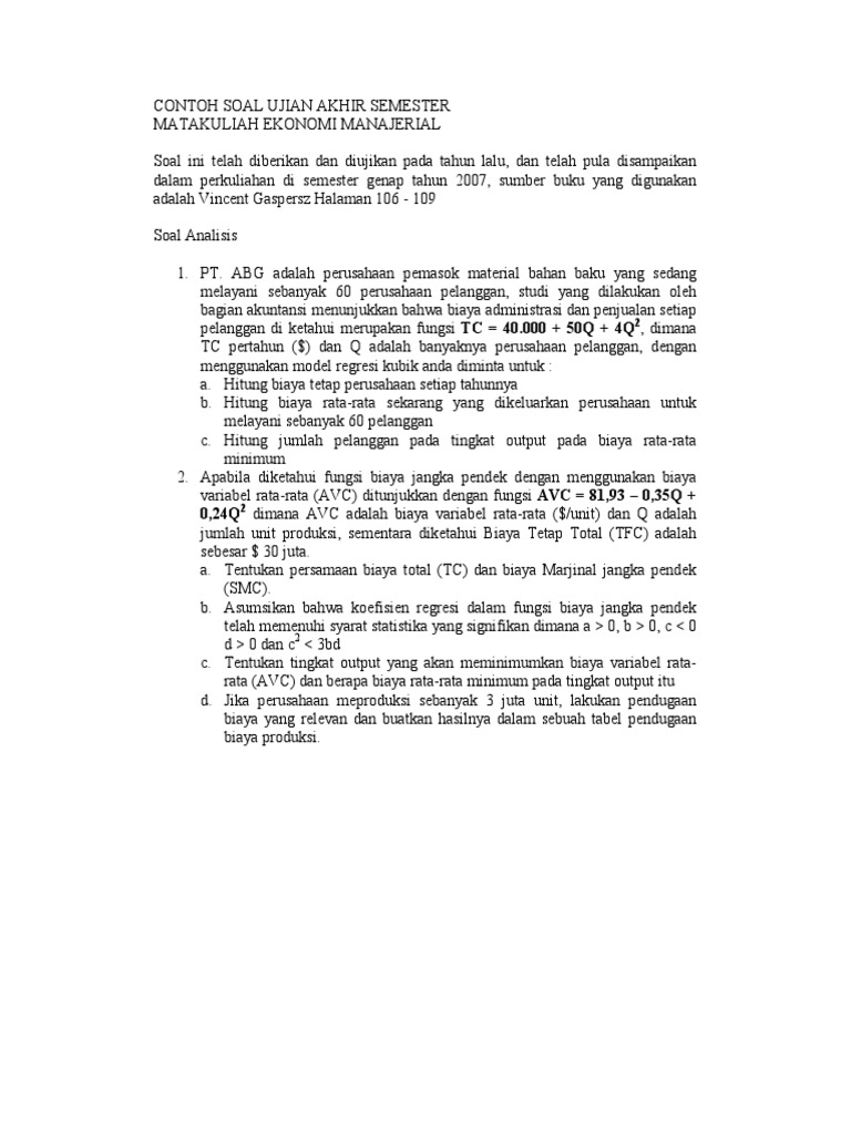 Soal Ekonomi Manajerial Untuk Uas Pdf