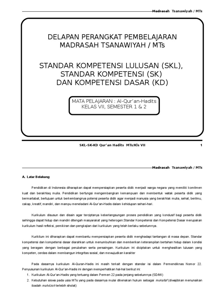 Rpp Silabus Mts Kelas Vii Viii Ix Mapel Al Qur An Hadits Kurtilas