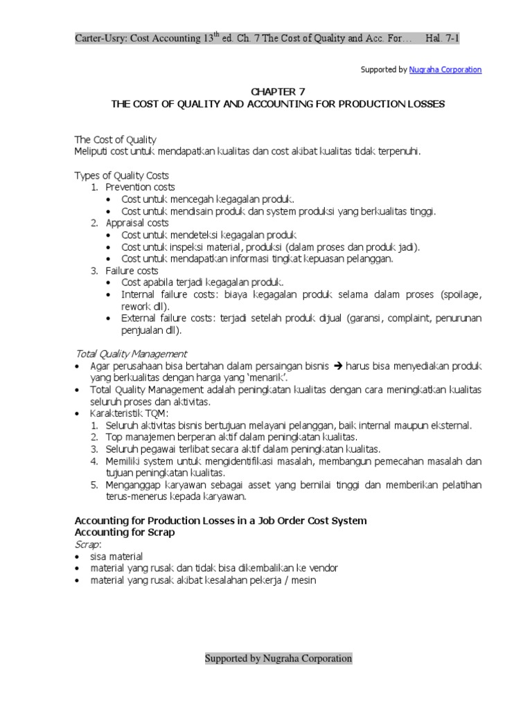 Bab 7 The Cost Of Quality And Accounting For Production Losses