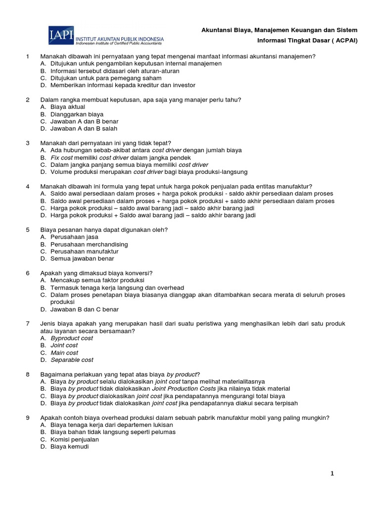Jawaban Kuis Am Contoh Cost Of Quality Contoh Soal Cost Of