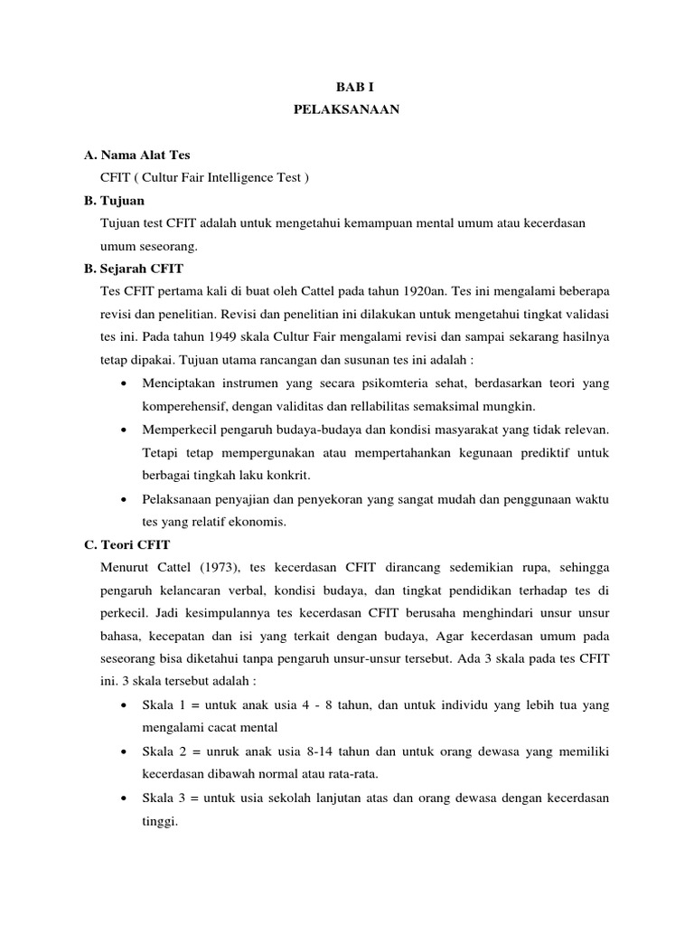 Cfit Culture Fair Intelegence Test Psikotes Kerja Yang Bertujuan