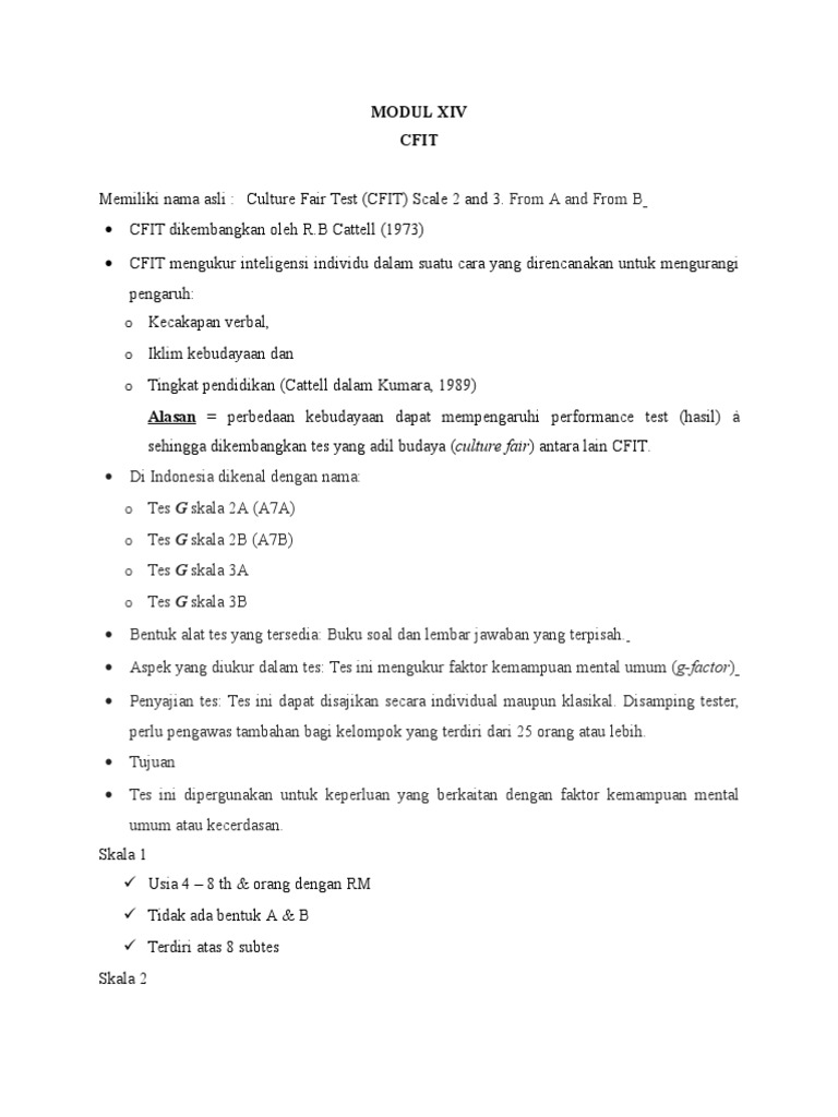 Cfit Culture Fair Intelligence Test Tes Ini Dikembangkan Es Ini