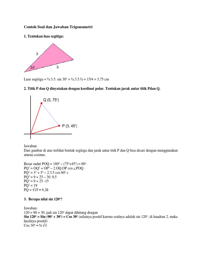 Rumus Trigonometri Dan Contoh Contoh Soal Beserta Jawabannya