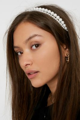 Imitation Pearl Star Pendant Headbands Sweet Fake Earrings Hair Hoop For Women 2018 Fashion Narrow Cloth Hair Jewelry Accessories Wholesale