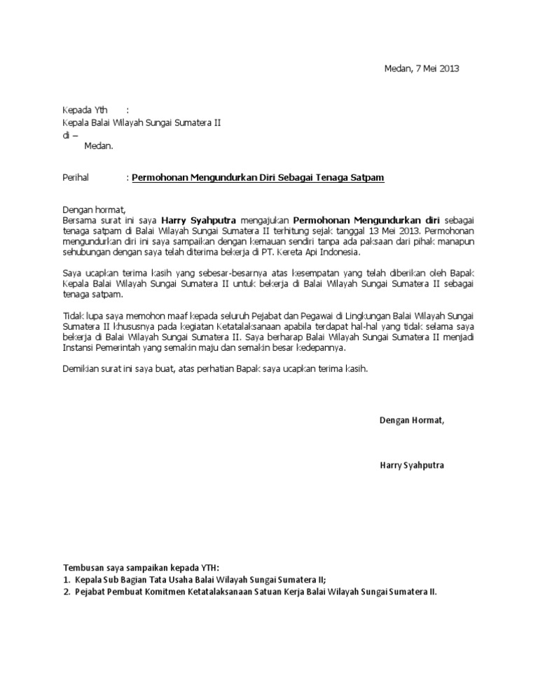 Surat pengunduran diri kerja atau resign letter adalah surat pernyataan bahwa seseorang mengundurkan atau surat pengunduran diri adalah salah satu surat yang di gunakan untuk melepas dari tanggung jawab dalam bentuk tertulis. Contoh surat pengunduran diri / resign dari karyawan, sekolah, organisasi, pekerjaan, guru, pabrik, yayasan dll lengkap. 11 contoh surat resign guru. Jika dilihat secara administratif, surat pengunduran diri dibutuhkan untuk arsip perusahaan yang membutuhkannya. Surat pengunduran diri ini digunakan sebagai perantara kita, untuk lebih formal kepada pimpinan sebuah perusahaan. Di samping itu juga akan terlihat mempunyai tata karma yang baik di mata semua orang. Maka dengan memberikan contoh surat pengunduran diri dari organisasi, anda sudah menyatakan untuk melepaskan diri dari semua kewajiban dan tanggung jawab tersebut berikut adalah beberapa contoh surat pegunduran diri dari organisasi yang bisa anda pergunakan sebagai bahan referensi. Pada surat pengunduran diri dari sekolah juga memiliki format dan struktur yang berbeda, karena di dalam surat tersebut anda harus menyertakan data diri dengan lengkap beserta dengan nomor induk sekolah. Entah bagi yang ingin resign dari tempat kerja di perusahaan yang selama ini ia bernaung di bawahnya atau dari jabatan tertentu. Sehubungan dengan adanya peraturan tidak boleh mengeluarkan siswa dari sekolah, maka jika ada siswa yang ingin putus sekolah atau keluar dari sekolah dengan berbagai. Klaten, 2 februari 2018 yth, kepala hrd pt. Persiapkan segala hal termasuk rencana dikemudian hari. Contoh surat pengunduran diri dalam bahasa inggris.